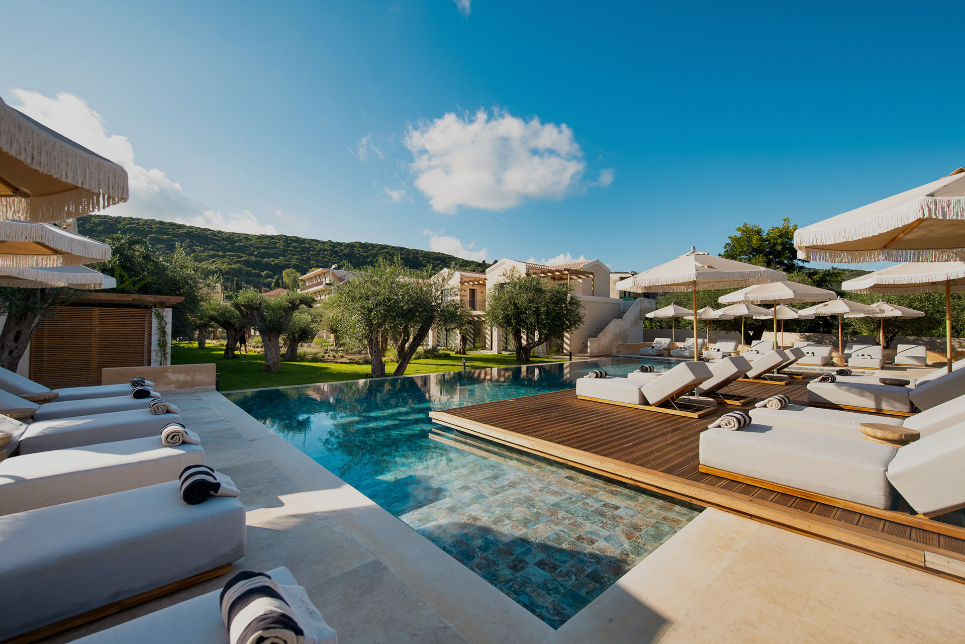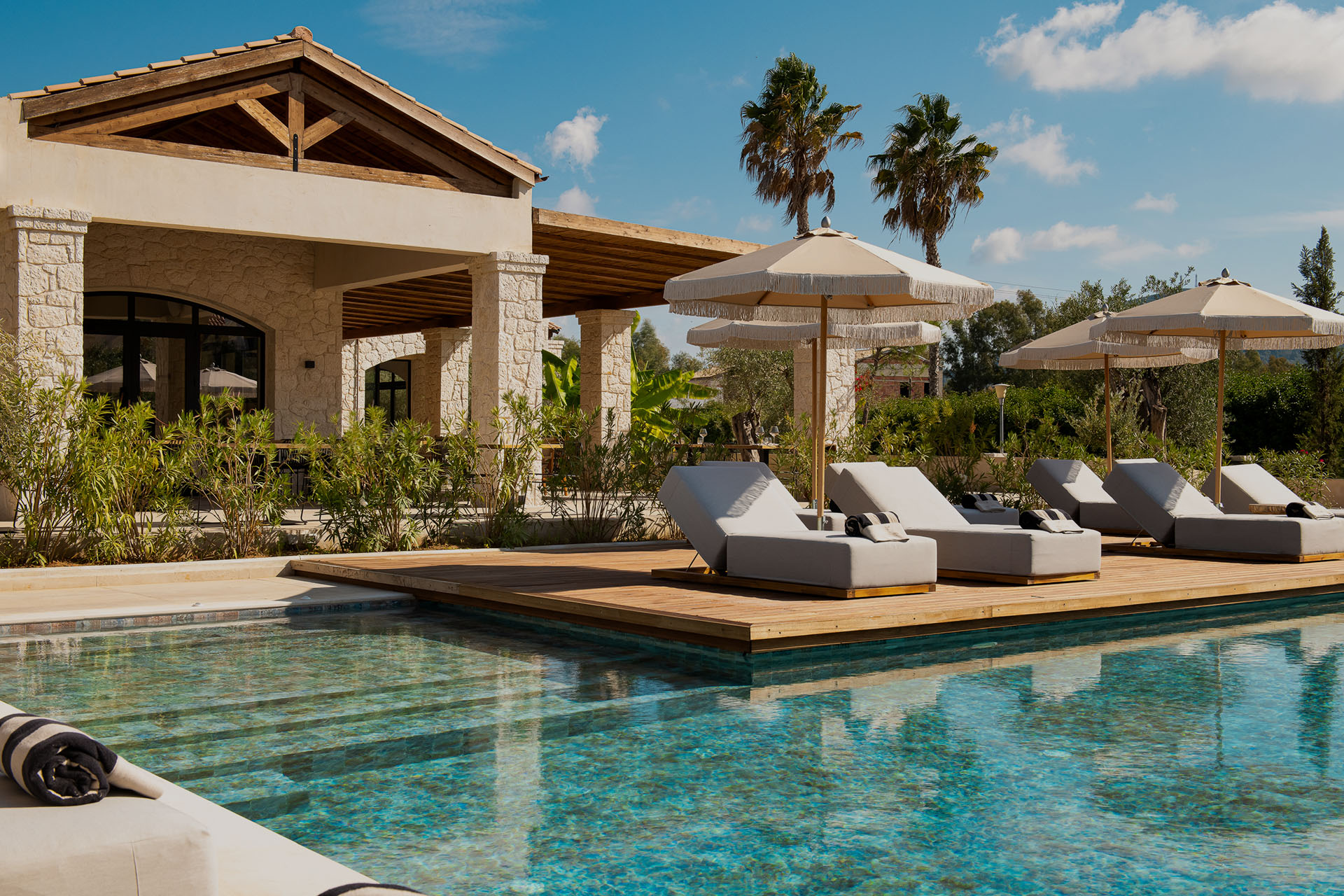 Από την πρώτη μέρα του σχεδιασμού, η αρχή ήταν ξεκάθαρη: να δημιουργηθεί ένα Boutique ξενοδοχείο που να αναδεικνύει την ομορφιά της Κέρκυρας και να σέβεται την περιβαλλοντική κληρονομιά του νησιού. Η χρήση τοπικών υλικών, όπως η πέτρα από το χωριό Σινιές της Κέρκυρας, και το φυσικό υλικό Κουρασάνι, αποτέλεσε το κλειδί για τη δημιουργία κτιρίων που αναδεικνύουν την τοπική παράδοση και ενσωματώνουν την περιβαλλοντική συνείδηση σε κάθε του γωνιά.