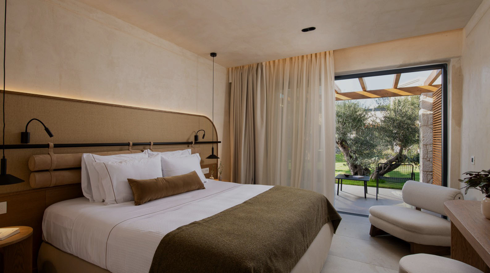 The Yard Corfu offers two thoughtfully designed accommodation types: Rooms with Yard and Junior Suites. Both are created to provide a sense of privacy, balance and quiet comfort within the olive grove setting. Natural materials, soft tones and functional design elements shape spaces that feel calm and personal, while modern amenities ensure an effortless stay. Whether opening to a private yard or extending into a spacious suite, each room is designed to support rest, ease and a gentle connection to the surrounding landscape..